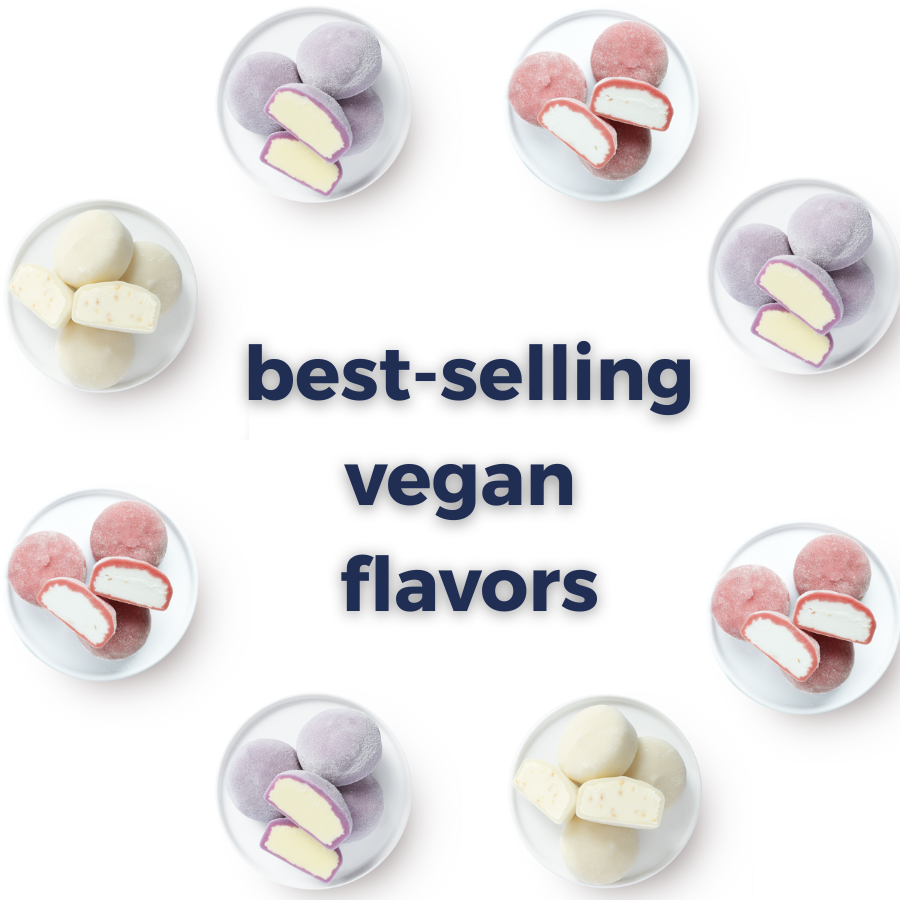 Creamy and bright, these 4 Vegan Flavors are the perfect balance of fresh and fruity, with a luscious blend of rich coconut cream and oat milk (two 4-piece boxes of each flavor, a total of 32 pieces of mochi). 8 pieces of each flavor: Passionfruit, Coconut, and Lychee. Flavors are subject to availability.